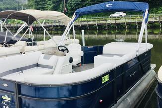 50 1 booking Great for family fun or cruising the lake. This boat has the tri-hull design with a 74 gallon tank. Top Lake Lure pontoon boat rentals.
